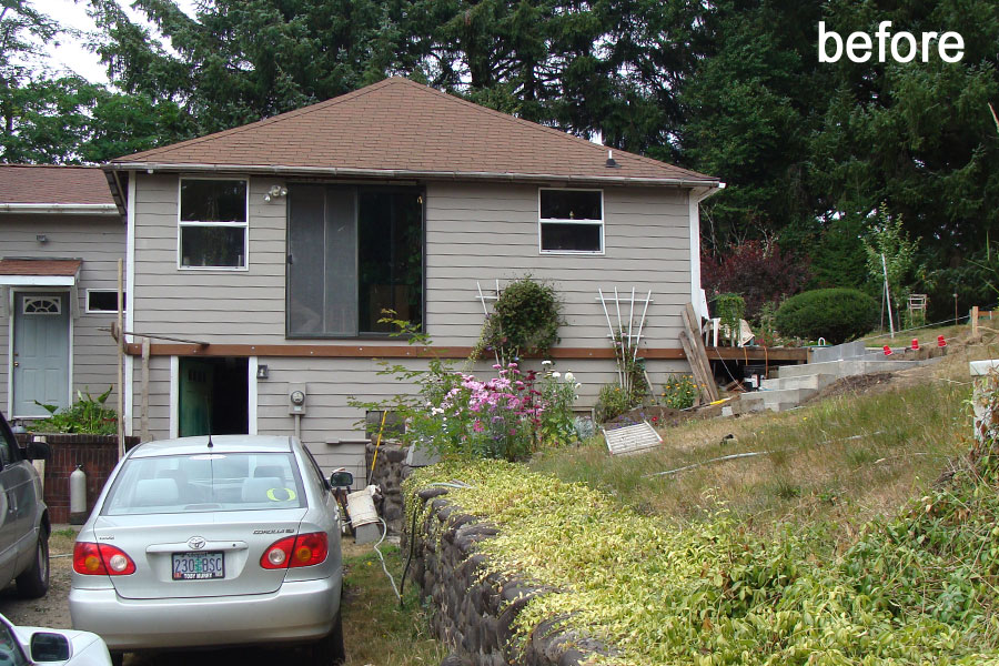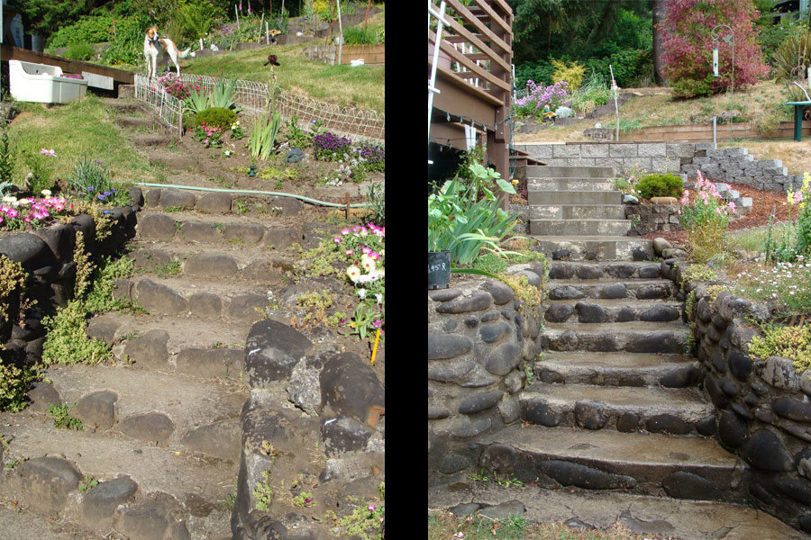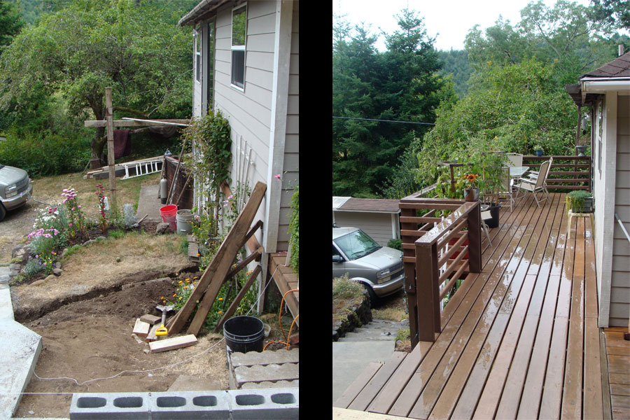 Design and construction of a new deck, concrete stairs and landscaping constructed using salvaged materials